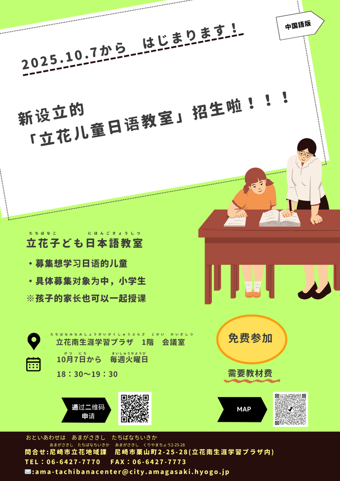 立花子ども日本語教室 生徒募集(たちばな こども にほんご きょうしつ せいと ぼしゅう)